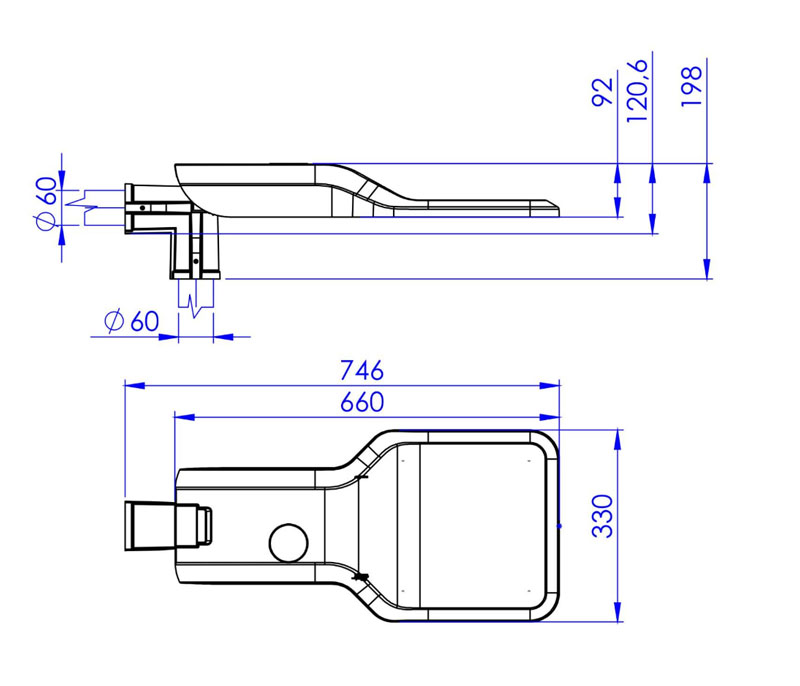 | Kako bi se ispunili zahtevi standarda IDA Dark Sky, svetiljke moraju biti montirane horizontalno u odnosu na kolovoz. |