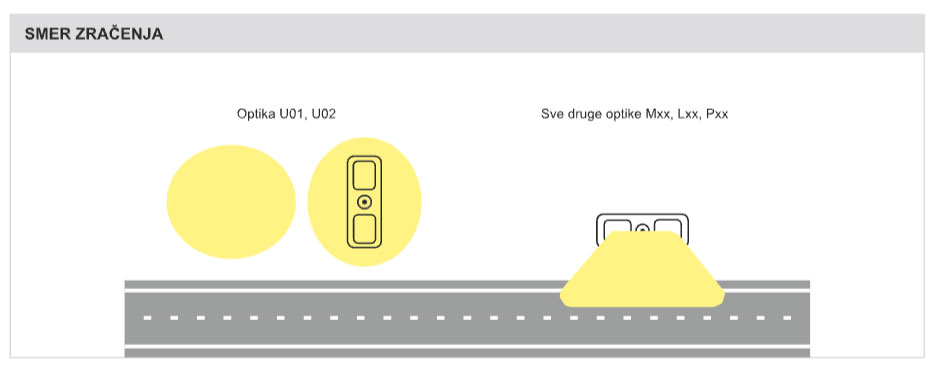 | Optički sistem | putevi (Mxx), putevi (Lxx), usmereno (Pxx), površinsko (Uxx), pešački prelaz (ZLx/ZPx), kombinovana optika (Kxx), zastori za svetlo NAZAD (BL1), zastori za svetlo NAPRED (FL1) |